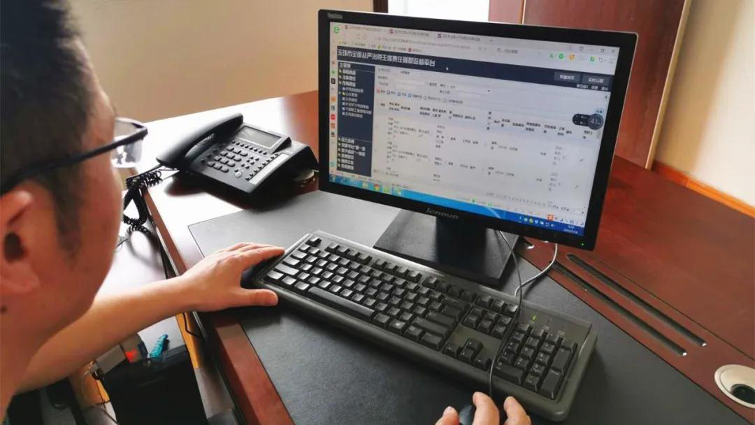 △玉环市纪委市监委派驻第五纪检监察组检查人员通过全面从严治党履职监督平台分析比对每一季度公务接待数据。