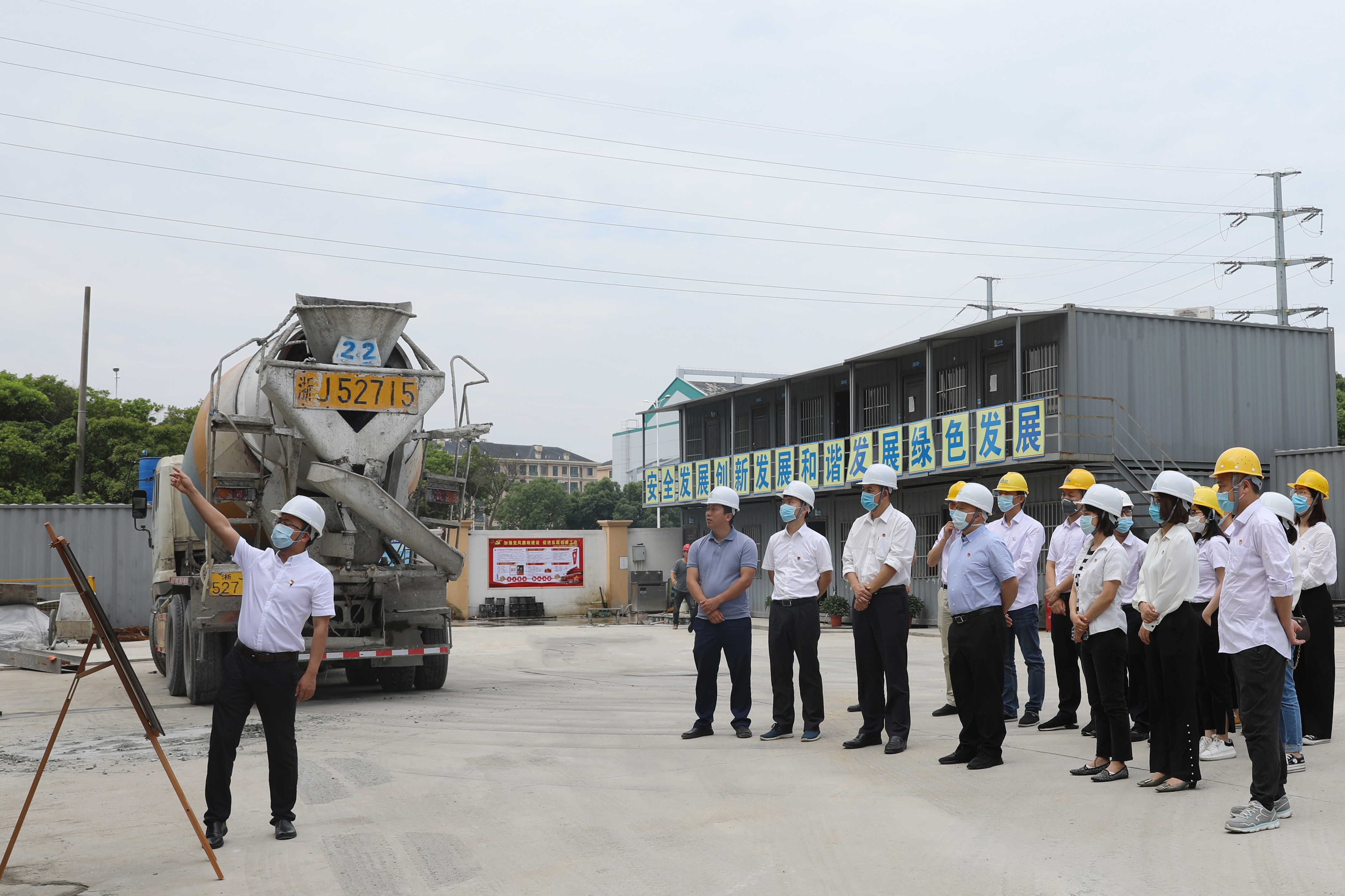 机关党支部“生产防疫两手抓、主题党日践初心”参观在建公交场站活动。集团党委书记、董事长兼总经理石再国,党委委员、纪委书记应巧蓓,支部党员和发展对象参加活动。