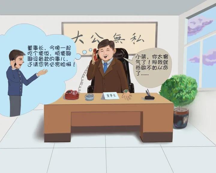 2020年3月31日下午,该环保科技有限公司销售经理蒋某为尽快收回设备款,便打电话给董文才,想邀请其吃顿晚饭,一起商量下设备款的事。董文才明白蒋某的意思,当场表示答应。