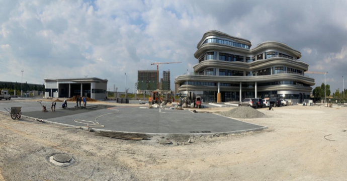 台州湾新区聚英路公交首末站项目土建主体、幕墙、铝板、变配电等安装已完成,目前正在开展室内墙板粉刷、龙骨、空调安装和停车区透水混凝土浇筑、地面硬化等室外配套工程收尾工作,总体形象进度达95%以上,计划年底前完成竣工验收并投入使用,尽早实现功能发挥公交效益。