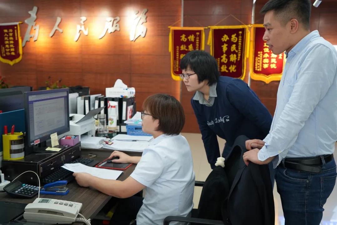 ▲闲林街道纪工委工作人员正在查阅联荣村所有“灵活就业补助”人员的申报信息