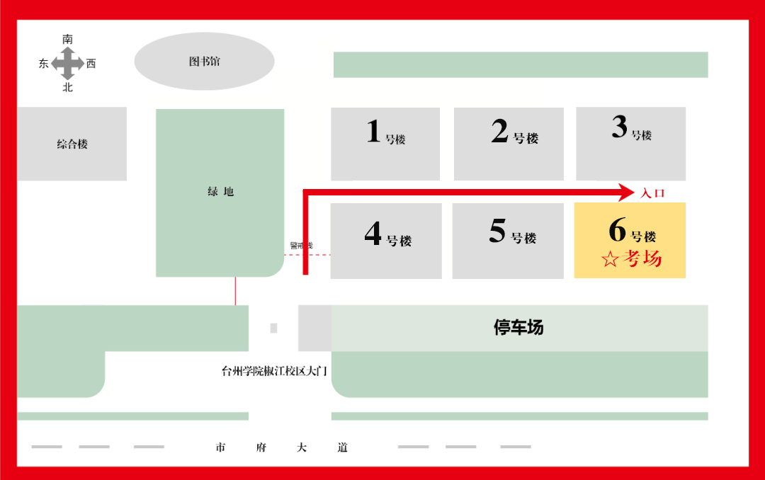 考试地点:台州学院椒江校区(台州市椒江区市府大道1139号)6号教学楼(具体考场及座位安排详见考试当天考场大厅张贴的安排表)。