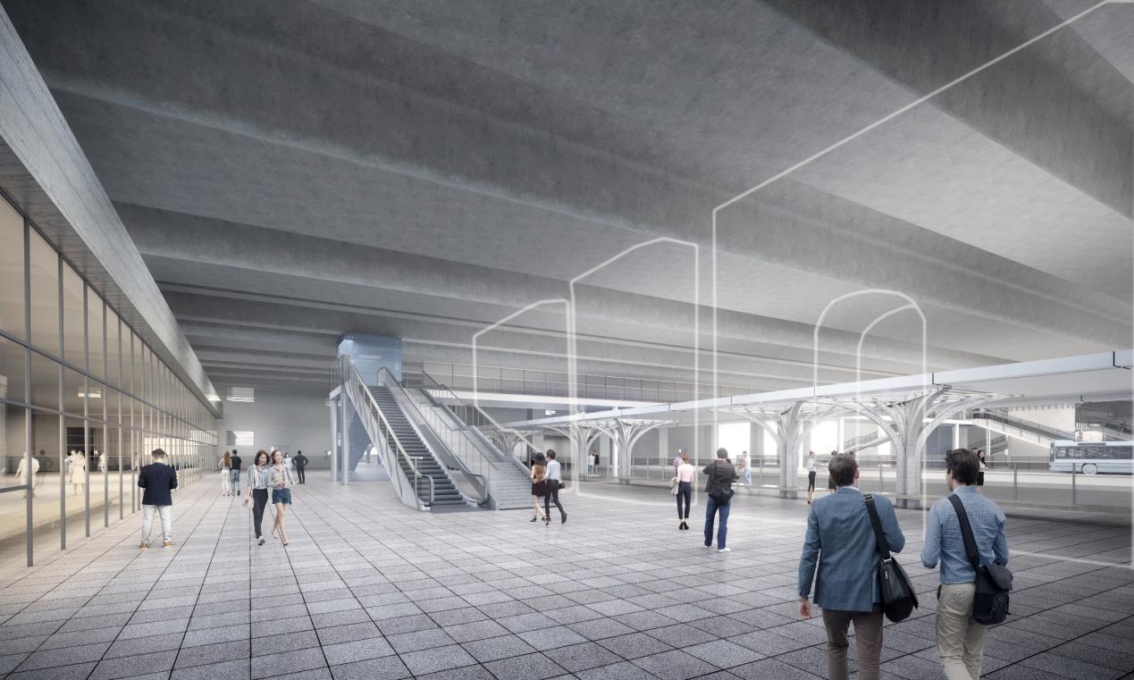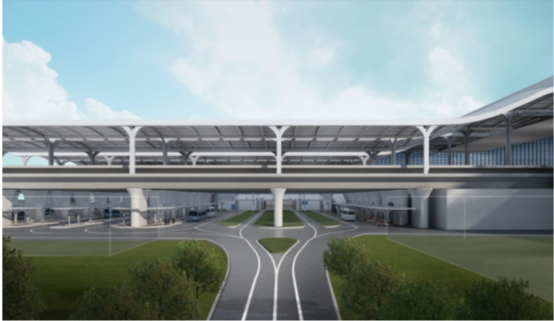 台州站桥下空间交通利用项目位于台州站铁路桥南、北侧,含公交车场和出租车场两部分。公交车场约29910㎡(其中:公交车场26282㎡、候车厅2737㎡、管理用房891㎡),出租车场约4789㎡(车场3893㎡、候车厅896㎡);候车厅与候车站台间设置110m串连人行天桥。本项目的建设可有效解决公交停车难、候车难等问题,为人流快速集散提供解决途径,改善市民公交出行美好体验,也是为高效推进“公交都市”创建的务实之举。