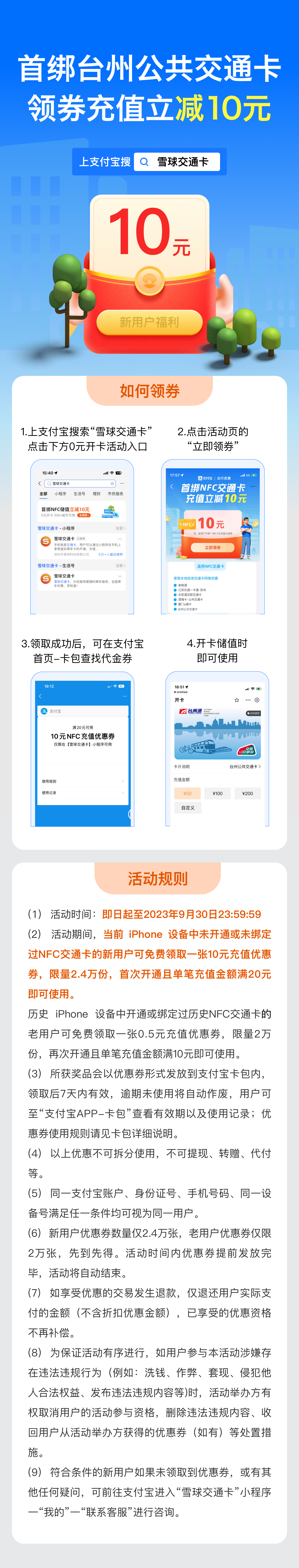 活动进行中 | 支付宝首绑台州公共交通卡,领券充值立减10元