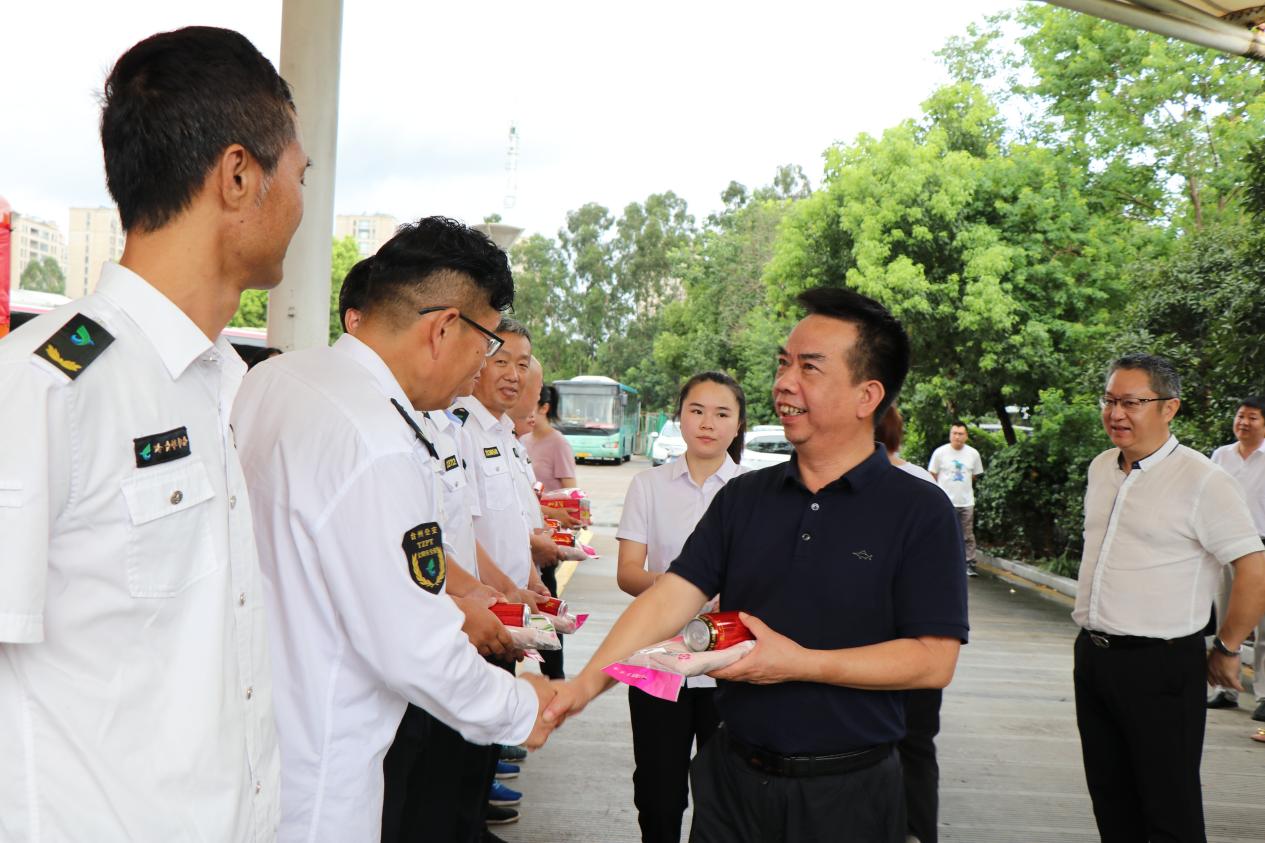 7月26日上午,台州市交通运输局副局长童连生、运输管理处负责人侯灵健、巴士公司总经理韩克华、党委委员倪建国及相关人员,为公交司机、维修工们开展防暑关怀活动,通过发放加多宝、毛巾等消暑物品,为一线工作者们送去夏日的清凉与关爱。