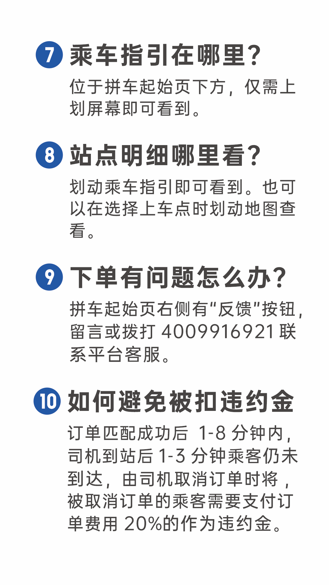 乘客下单后,系统会根据下单乘客的需求进行优化组合,生成一条专属线路,司机根据提示逐一为拼车乘客提供服务。
