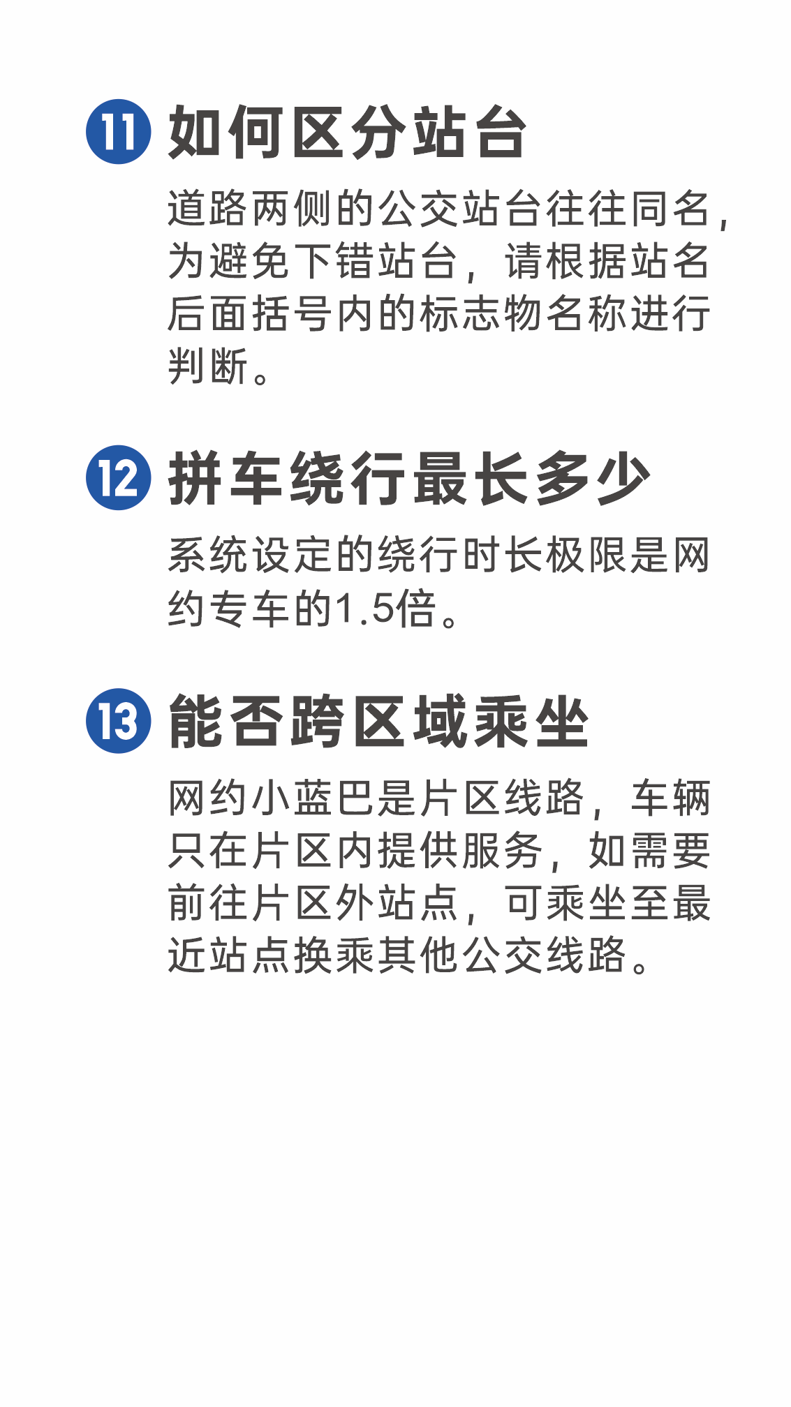 试点期间网约小蓝巴运营时间为6:30—22:30,实行3元一票制,不支持各类公交卡优惠。