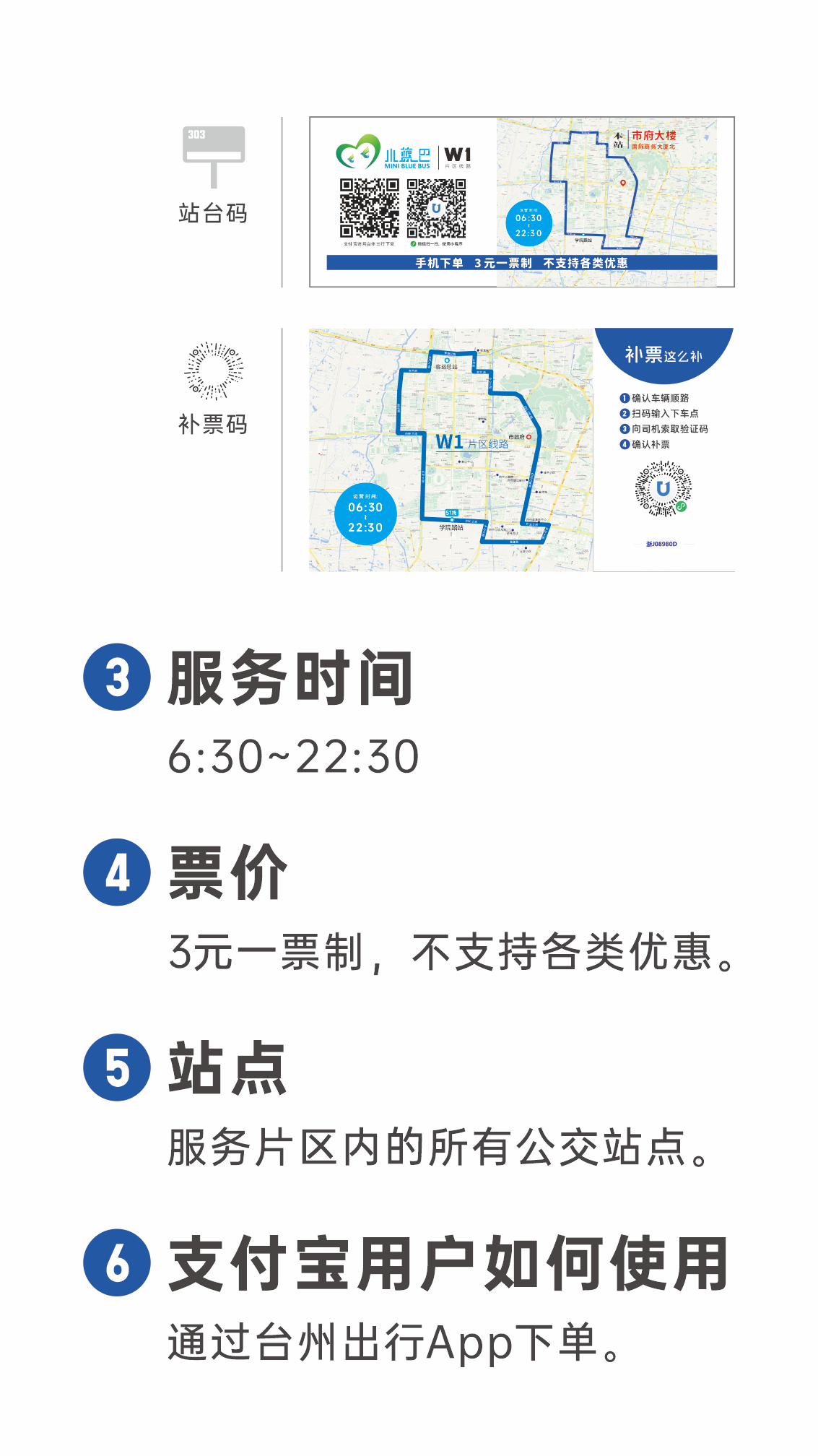 为探索公交服务新模式,满足公交线网末端市民个性化出行需求,延伸公交服务辐射范围和深度,提高公交覆盖率,计划于9月18日下午在椒江区开启“网约小蓝巴”试点服务,试点线路为W1路片区线路,同时停止W1路线状服务。具体如下: