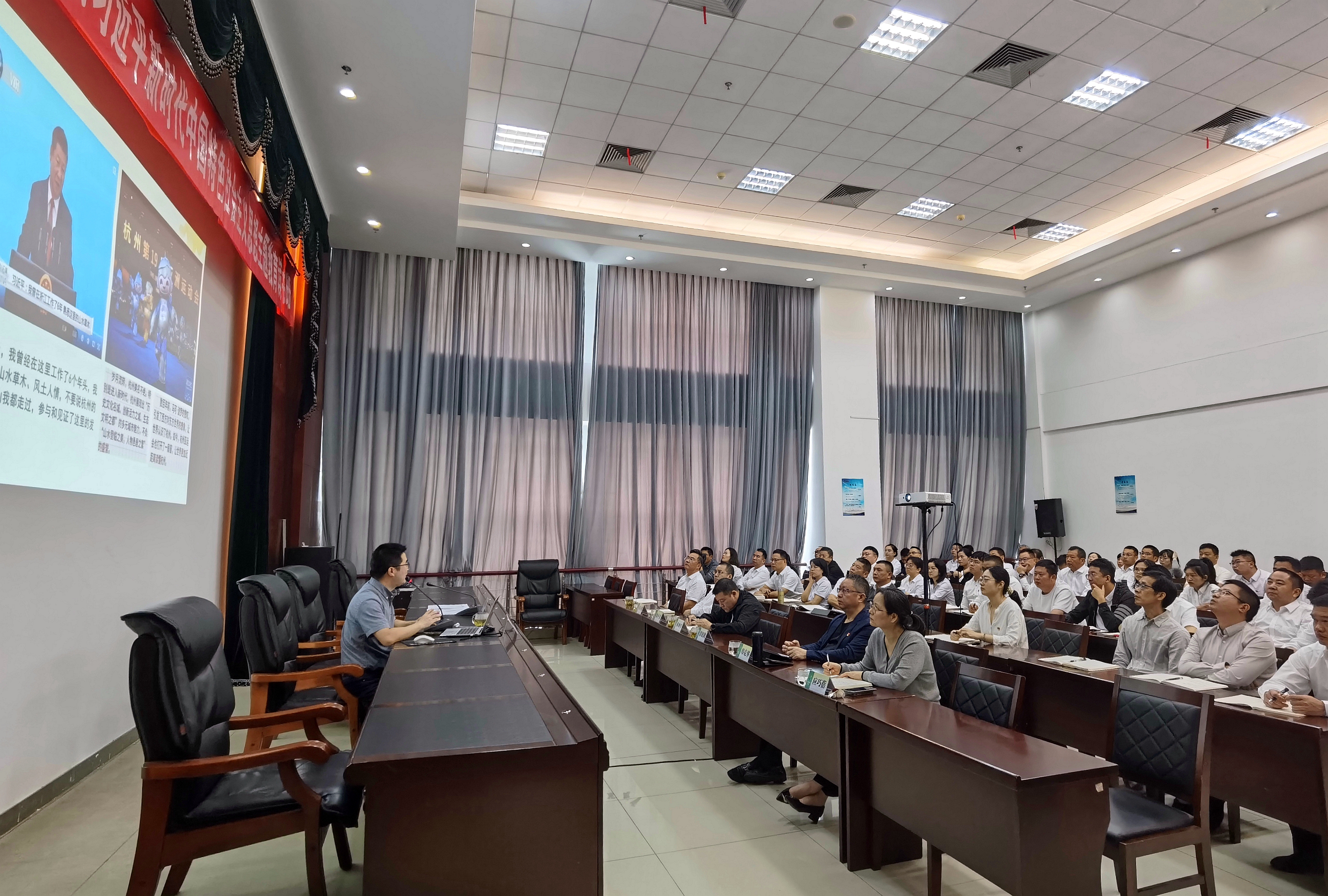 开班仪式后,台州学院马克思主义学院盛跃明教授作了题为《习近平台州足迹——循迹溯源学思想促践行》的专题辅导报告。