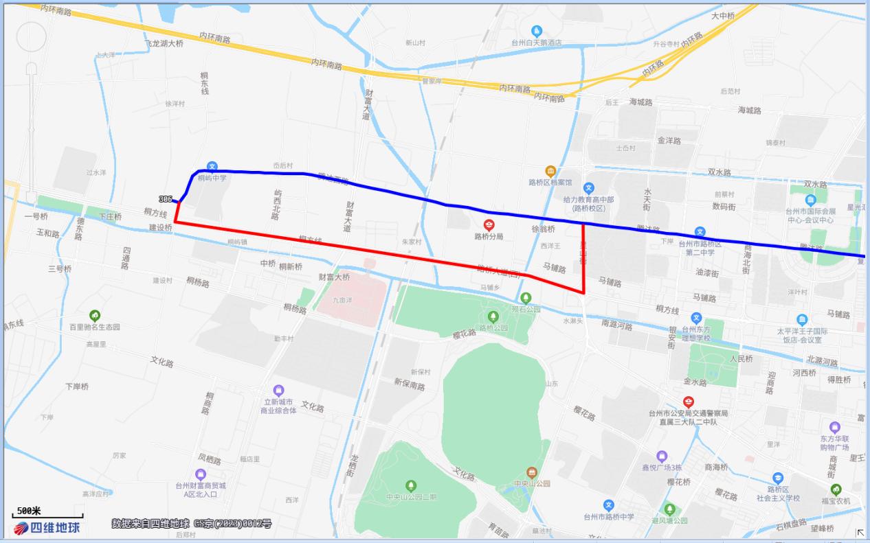 五、913路,农林大楼与湖滨路南间,临时调整为经路桥大道、财富大道运行。临时取消停靠园丁苑、路北街道、路桥图书馆、高桥章4对站点。同时,临时增加停靠路桥电力大厦、恩泽医院北(往短途南站方向)、财富大道腾达路口等3对站点。