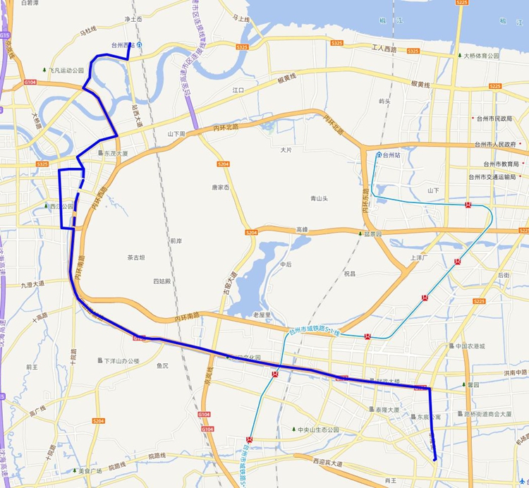 原线路走向:前章路-沿江路-椒江一桥-台州大道-黄海公路-站西大道-站前北路