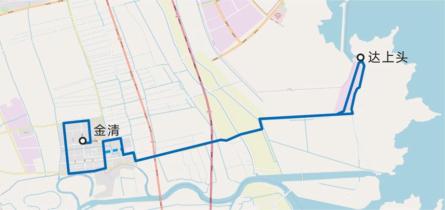 下行:达上头、腿石咀、海峰、海燕、和谐桥、后黄屿、黄琅农垦场、黄屿涂、农垦场西岸、八条河、解放坦、金清长桥、七条河西、普仁塘、下盟、牛涝里、南盟、五丰、双盟、五丰闸、金清花园新村、金丰、金清中学东、金清中学、金清大道人民路口、勤劳小区、金清中心菜场、金清供电所、金清水厂、上塘、金水湾、金都雅苑、黄金海岸、春江名园、高升、路桥第二医院、金清镇政府西、金清客运中心。(取消站点:金清交警中队、金丰北)