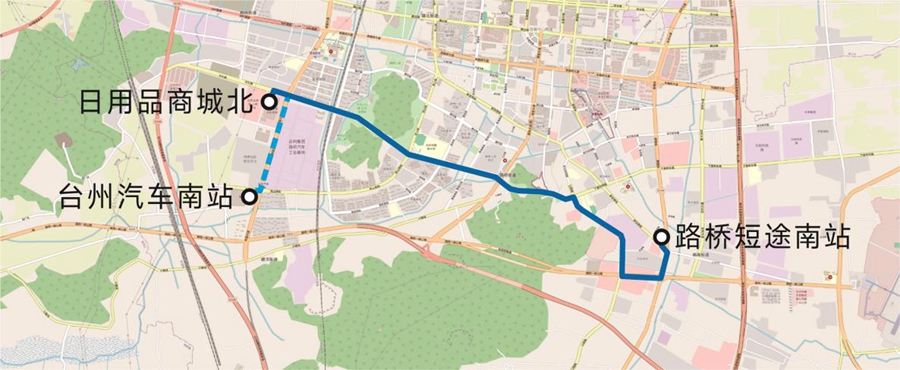 从“路桥短途南站-台州汽车南站”变更为“路桥短途南站-公交商城北站”。