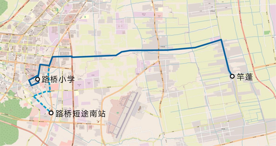 从“公交竿蓬站-路桥短途南站”变更为“公交竿蓬站-路桥小学”。