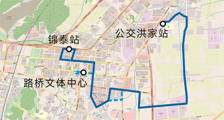 从“公交洪家站-路桥文体中心”变更为“公交洪家站-锦泰站”。