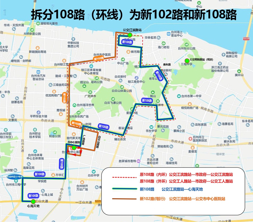 108路:从“公交江滨路站—市政府—公交江滨路站”调整为“公交江滨路站—公交心海天地站”。