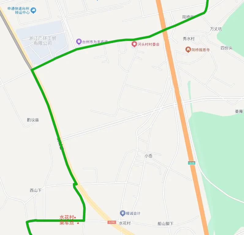 黄岩区院桥镇水花村乘客请前往图示指定上车点候车,由此带来的不便敬请谅解。