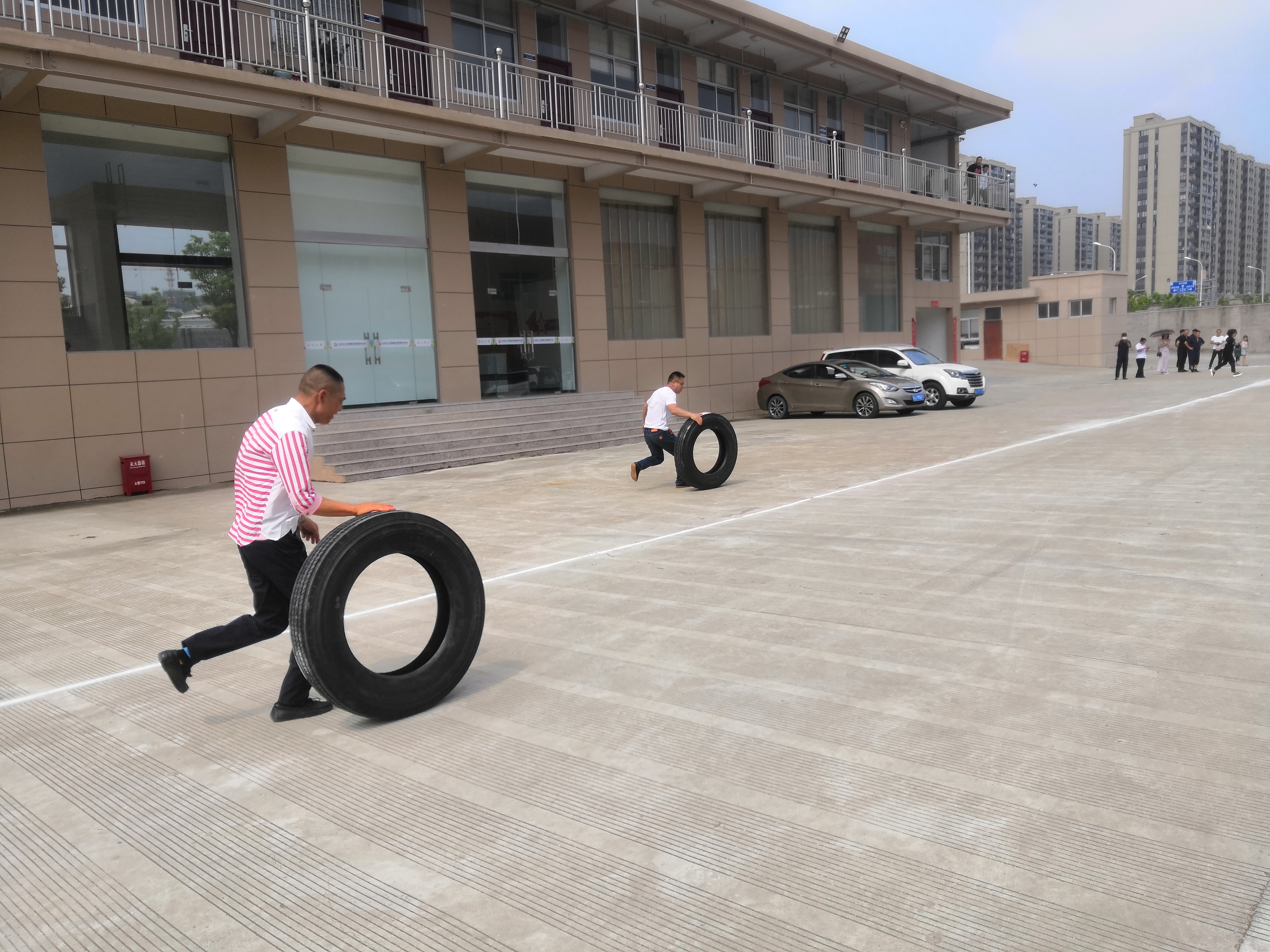比赛由“滚轮胎”、“手忙脚乱、“袋鼠跳跳跳”3个项目组成。率先开赛的是滚轮胎接力赛,运动员们展开了一场速度与激情的比拼,平日工作时与轮胎接触多的运动员们出色的完成比赛;“手忙脚乱”接力赛要求手脚触碰对应手脚图标前进的同时捡起散落的球,并完成接力,此项比赛考验运动员们的手脚协调能力及反应能力;“袋鼠跳跳跳”接力更是将活动推向高潮,各队选手们将自己装进袋子,模仿袋鼠快速跳跃前进完成接力,由于跳动的滑稽,现场不断的伴随欢笑与加油声。