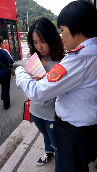 一天中最需要耐心的工作是跟车服务。根据安保视频抽查中发现的违规行为,安保第一中队队员搭上重点驾驶员车辆,进行跟车服务,检查车上安全设施、帮忙打扫车内卫生。如有行动不便的老人上车,马上将老人搀扶至爱心座椅,待坐稳后再告知驾驶员起步发车。她们还记录驾驶员的开车习惯、安全驾驶情况,提醒驾驶员存在的违规行为,解释公司规章制度,传达公司文件精神,引导驾驶员树立良好形象,提升服务水平。