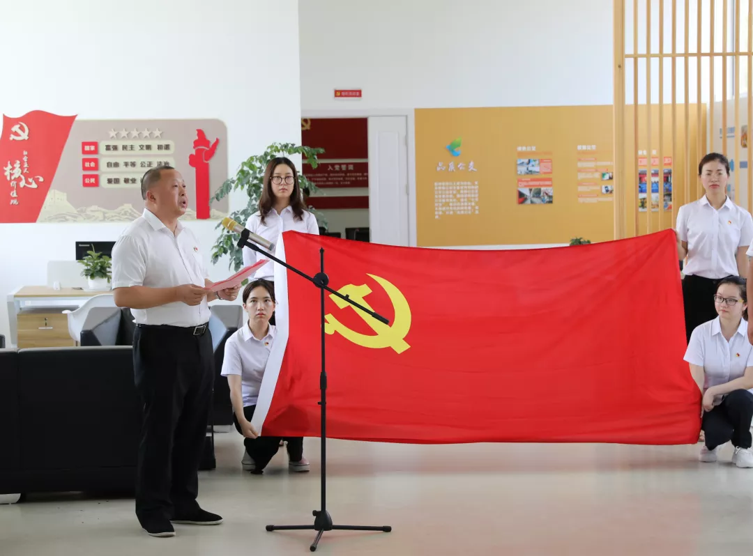 大会在《国际歌》中拉开序幕。“我志愿加入中国共产党,拥护党的纲领,遵守党的章程……”新党员在党委委员徐中美的领誓下,一起紧握右拳,面对党旗,庄严宣誓,誓词铿锵有力,党员们目光坚毅,郑重许下对党的承诺,表达着为共产主义事业奋斗终身的决心。